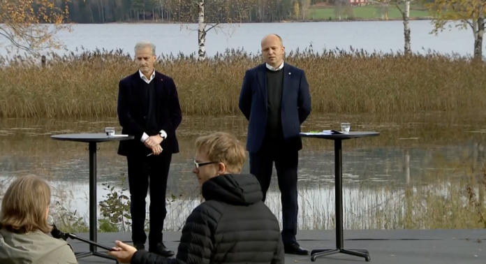 Labor party leader Jonas Gahr Støre and Center Party (Sp) leader Trygve Slagsvold Vedum presented the new government platform on Wednesday at 14.00.